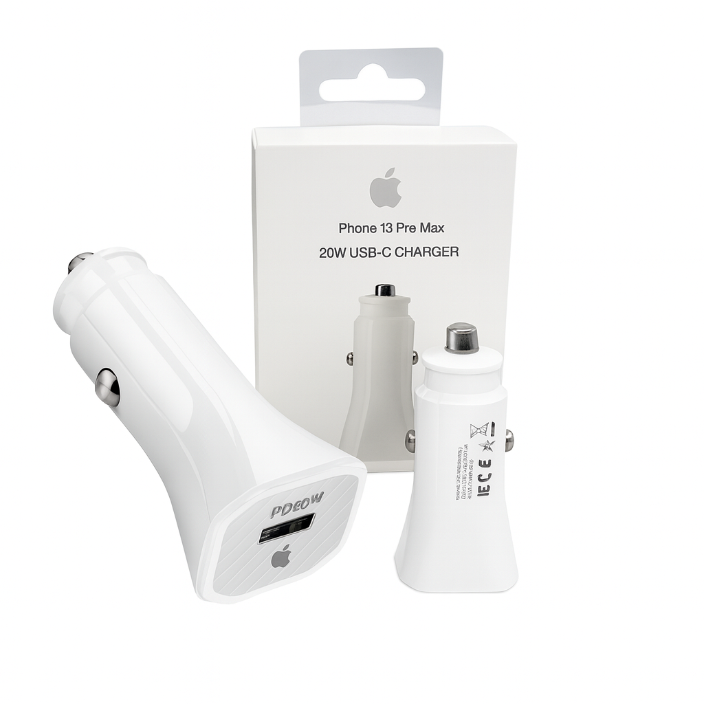 Chargeur Voiture iPhone USB-C 20W (High Copy) pour iPhone 13, 14, 15, 16, 17. Recharge rapide, bonne qualité, compatible Android & iPad. Livraison partout au Maroc.
