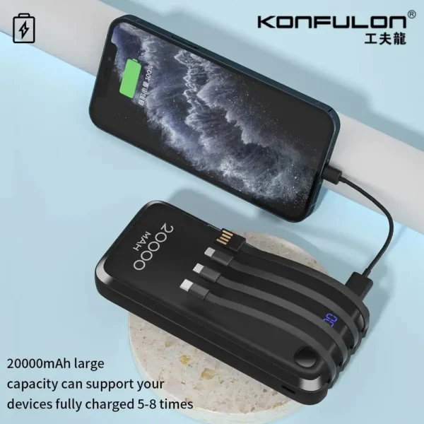 KONFULON A23S Power Bank 20000mAh avec câbles intégrés et écran LED
