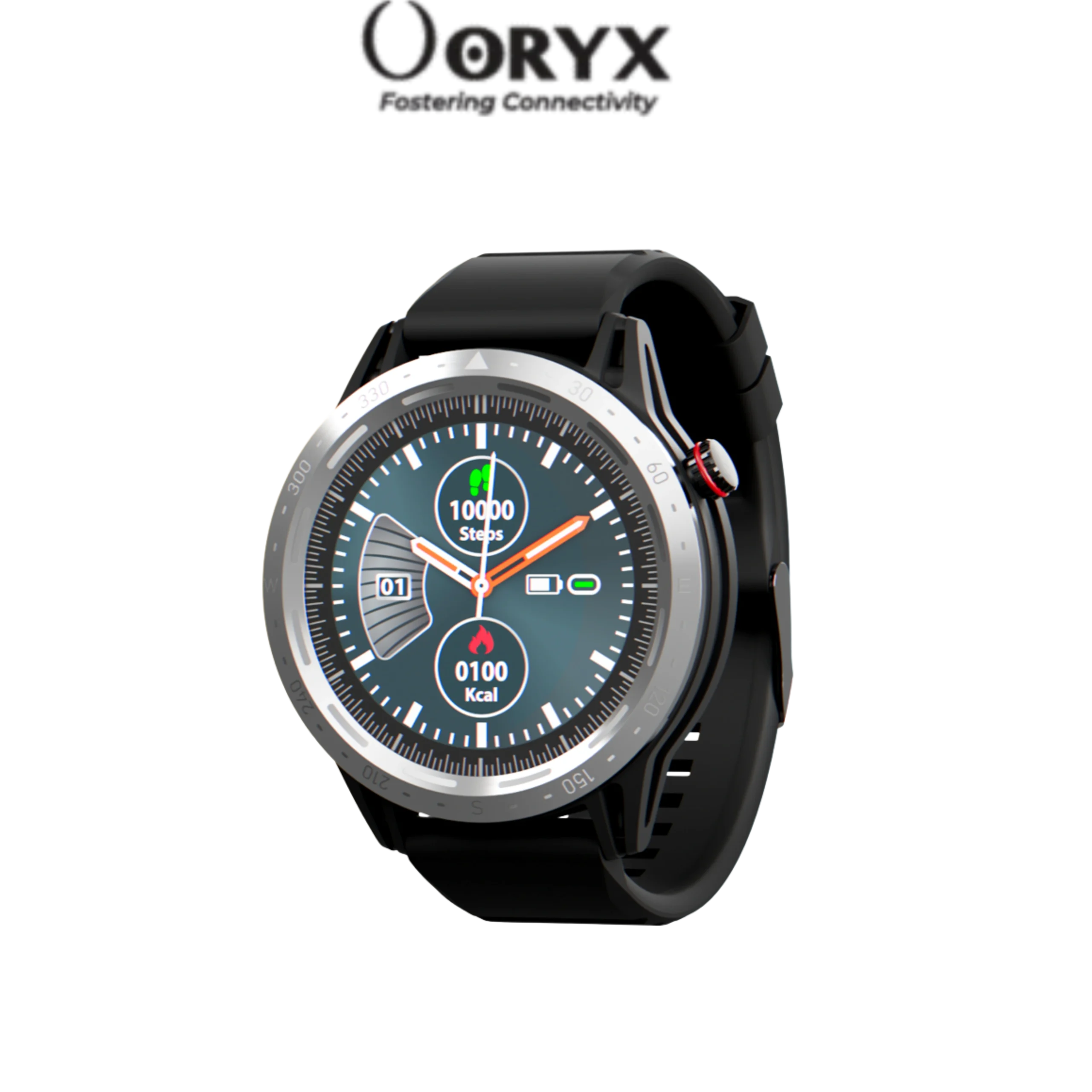 Oryx RS10 Smart Watch – Montre connectée élégante et polyvalente avec écran tactile 1,28’’ TFT, capteurs SPO2 et fréquence cardiaque, multiples modes sport, étanchéité 3ATM, autonomie longue durée jusqu’à 20 jours et compatibilité Android & iOS.